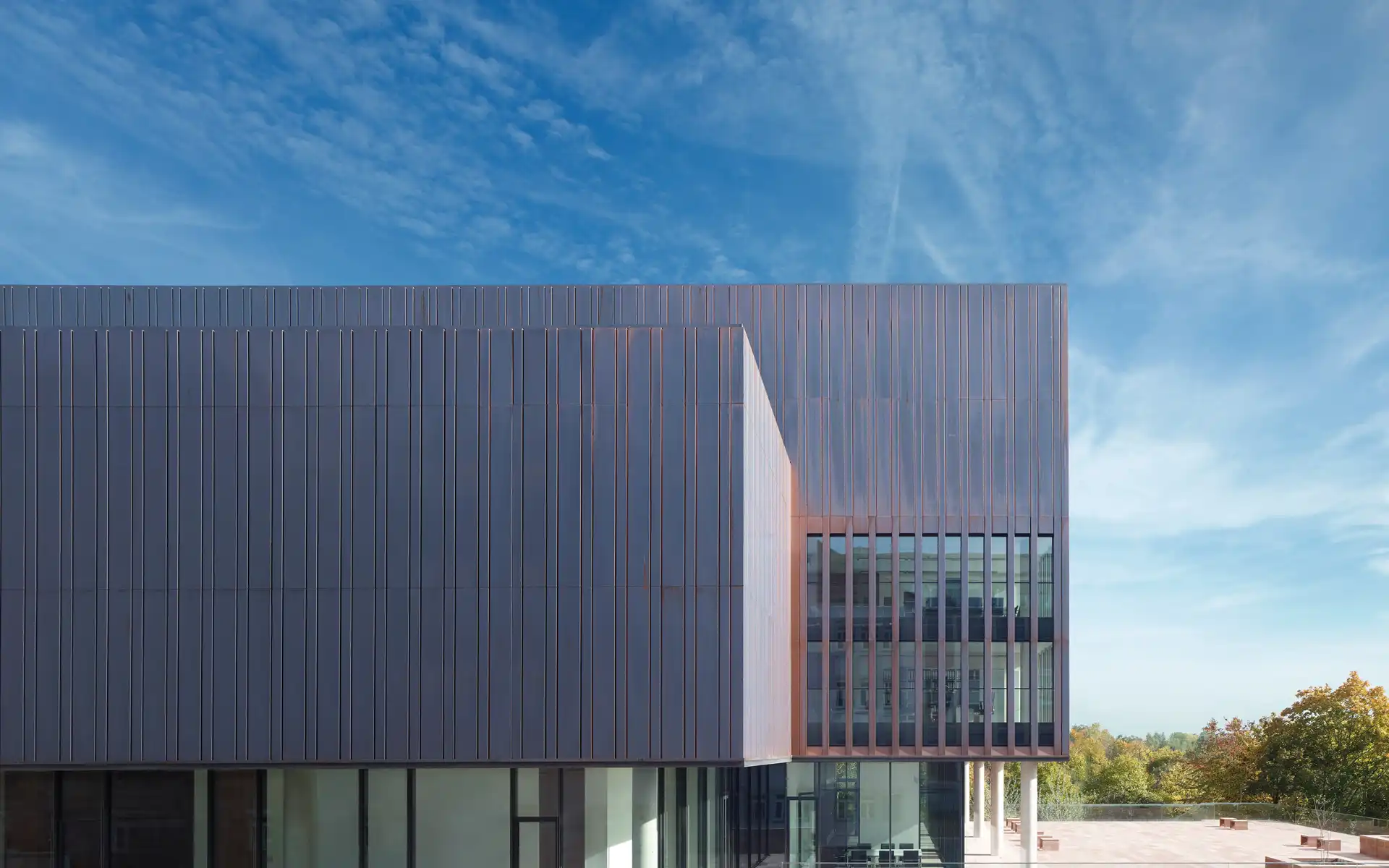 Ultimately, on the sloping surfaces, the colour process yields a robust green patina – as is typical for copper surfaces. This patina lends the cladding its distinctive character, at the same time providing long-lasting protection for decades to come.