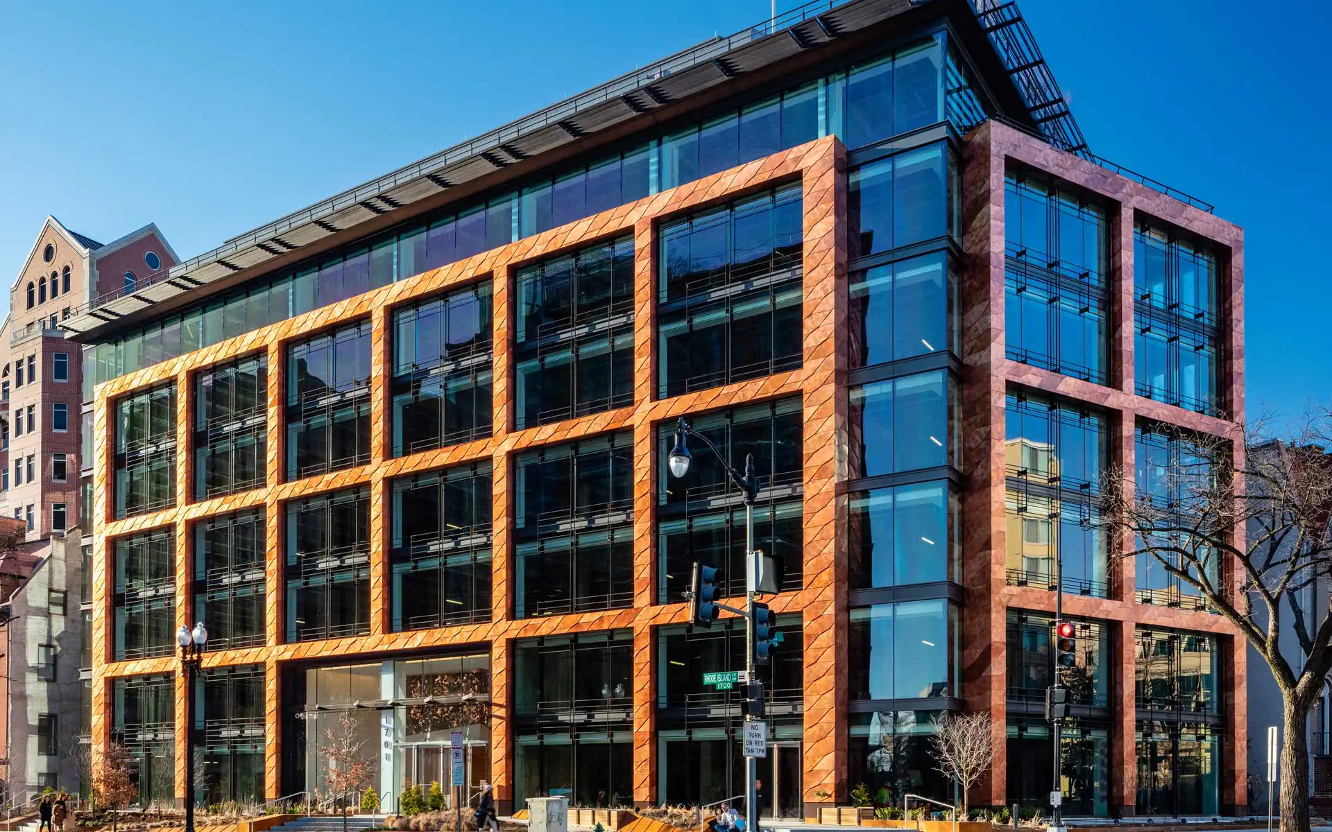 But what follows is an ever-changing spectacle of weather, light and the natural, lively language of the material: After installation on the building, TECU® Classic retains its typical bright red copper colouring for a period of time. Changes are very gradual and not entirely predictable – just like the weather, which, in turn, is solely responsible for copper’s continual changes. First, the surface turns matt. Gradually, the material develops an oxide layer to protect it against the effects of weathering. This process brings with it striking colour variations through an entire range of brown and brown-violet tones, offering varying nuances according to change of light and season.