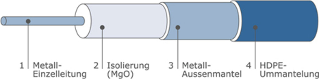 - High mechanical resistance due to an outer metallic sheath and the high compression of magnesium oxide powder.